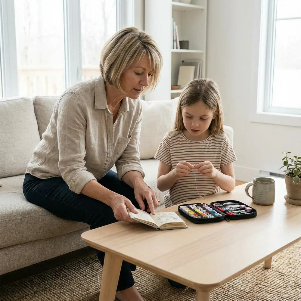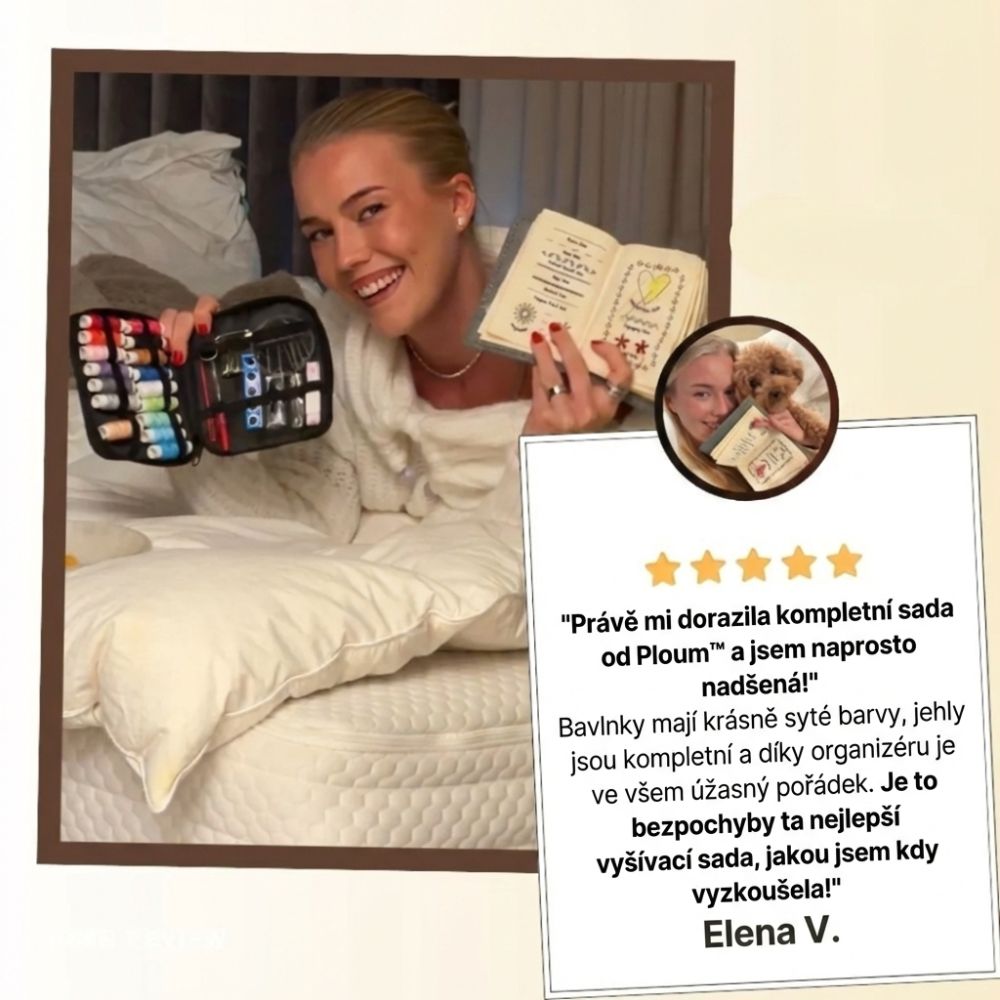 🎁 Každá sada obsahuje: Knihu + kompletní šicí sadu (vyšívací bavlnky, jehly a nezbytné příslušenství)